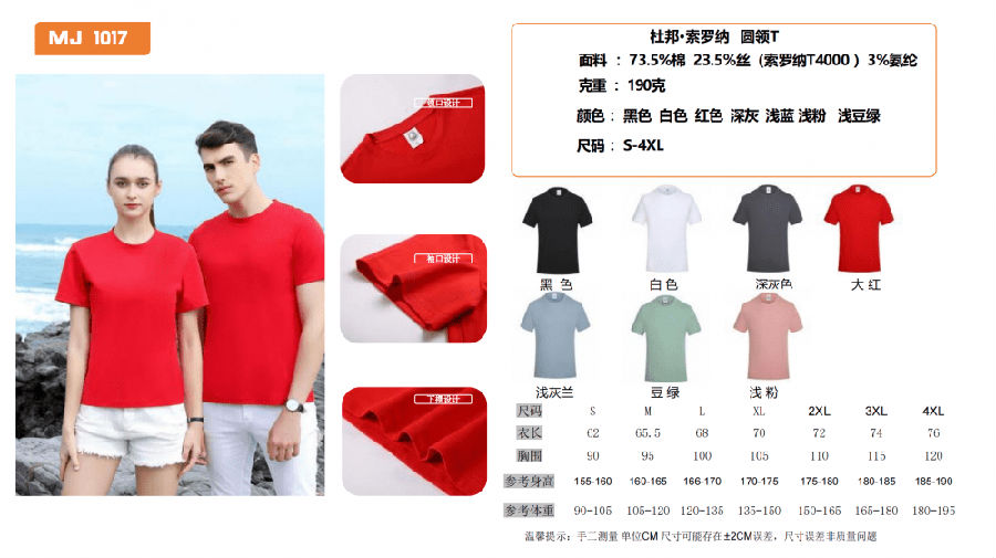 上一篇:MJ503 双珠地落肩圆领T恤 下一篇: MJ502 50支丝光棉圆领T恤B << 返回
