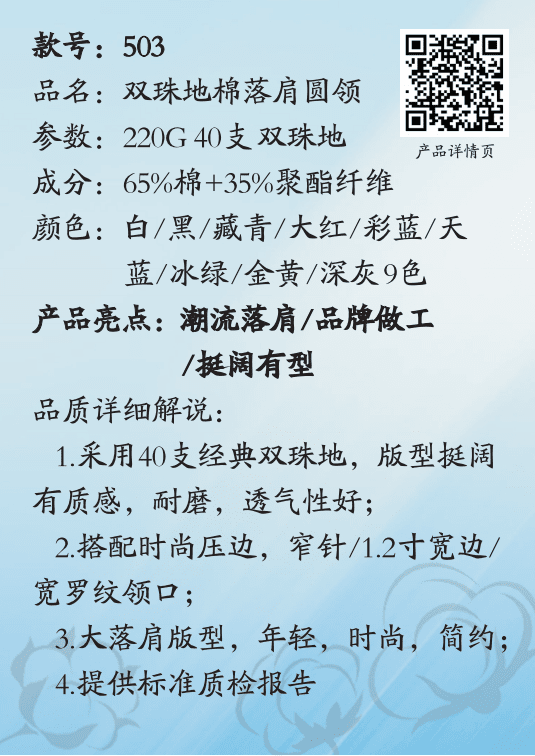 上一篇:MJ1018 #40支精梳丝柔棉T恤 下一篇: 主推款杜邦圆领T恤 MJ1017 << 返回